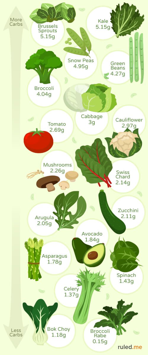 Below you’ll find a list of vegetables based on how low carb they are, so if you need help finding a certain one use the Find function (Ctrl + F). These are based on 1/2 cup (~4 oz.) or 100g servings, which is the general recommended serving size for vegetables.
